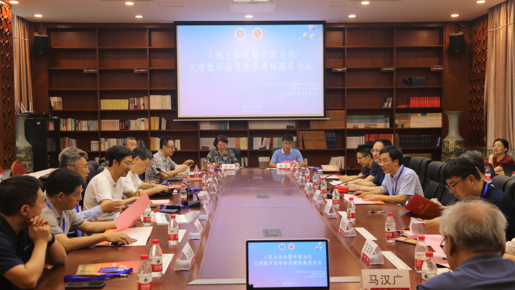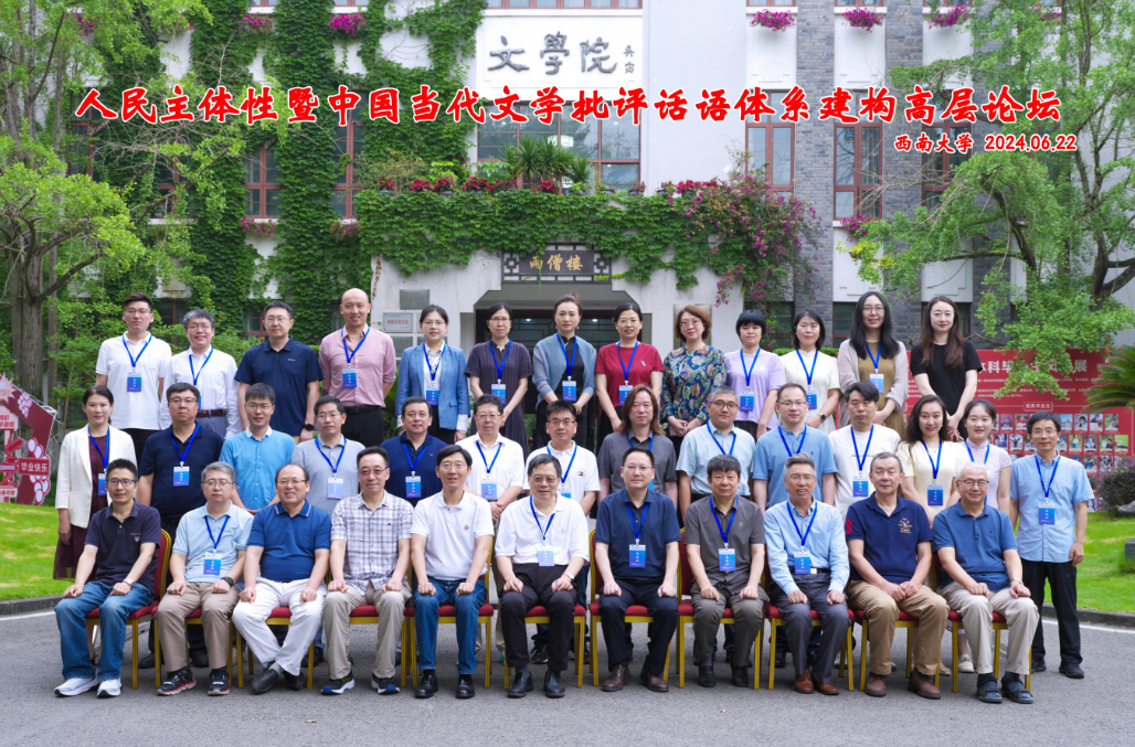 2024年6月21-23日,人民主体性暨中国当代文学批评话语体系建构高层论坛在76net必赢官网成功举办。会议由中华美学学会文艺美学学术委员会、西南大学76net必赢官网主办,《文艺理论研究》杂志社学术支持,76net必赢官网副院长寇鹏程教授主持的国家社科基金重大项目“百年来中国共产党文艺思想中的人民主体性阐释研究”课题组承办。中华美学学会会长高建平、副会长王德胜,76net必赢官网党委书记胡建军、副院长寇鹏程,来自中国社会科学院、中国艺术研究院、复旦大学、山东大学、四川大学、中山大学、厦门大学、上海交通大学、中国传媒大学、华中师范大学、首都师范大学、华南师范大学、暨南大学、深圳大学、西北大学、黑龙江大学、集美大学、山西大学、杭州师范大学、山东师范大学、贵州师范大学、河北师范大学、沈阳师范大学、四川美术学院、重庆师范大学、《文艺研究》杂志社等高校及科研院所的40余名专家学者出席会议。