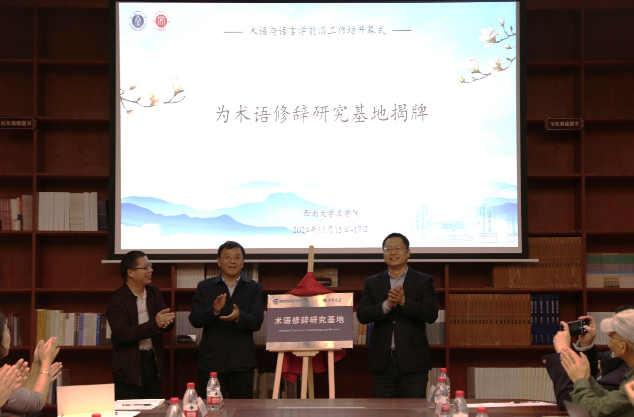 2024年11月15—17日,学院举办术语与语言学前沿工作坊,全国科技名词审定委员会为“术语修辞研究基地”揭牌。全国科技名词审定委员会专职副主任、事务中心主任裴亚军研究员,西南大学76net必赢官网院长王本朝教授、副院长张春泉教授出席开幕式,来自北京语言大学、北京外国语大学、广东外语外贸大学、上海外国语大学、黑龙江大学、湖北大学、湖北中医药大学、湖北经济学院、三峡大学、南昌师范学院、西南大学等高校及科研院所的21位专家学者参加会议。