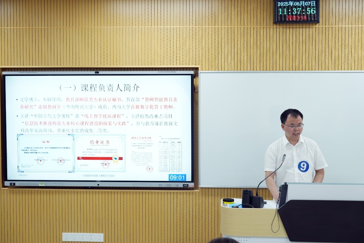 决赛现场,两位老师通过教学案例演示与创新方案汇报,充分展现了如何运用AI技术解决教学过程中的痛点问题,实现课程教学全环节的创新与重构,通过搭建课程智能体,高效助教助学。