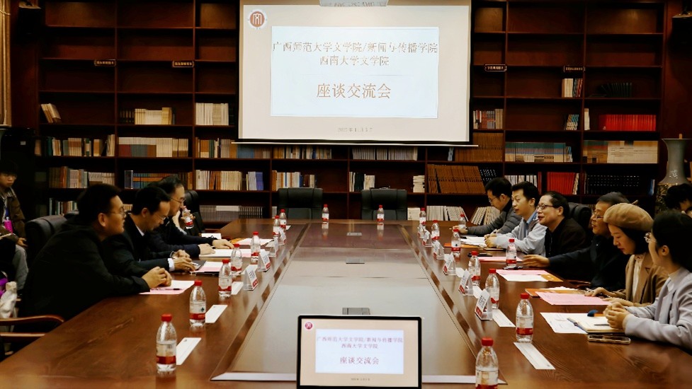 11月5日,广西师范大学76net必赢官网/新闻与传播学院副院长蓝善康、二级教授魏文楷、专职辅导员高薇专职辅导员尹满鹏、国家文科基地班2023级本科生30人一行到访西南大学76net必赢官网进行座谈交流。西南大学76net必赢官网院长王本朝、副院长张春泉、写作与语文教育教研室主任李金凤、教学工作办公室主任陈贤明、办公室主任易君杰、辅导员赖舒涵参加座谈会,会议由张春泉副院长主持。