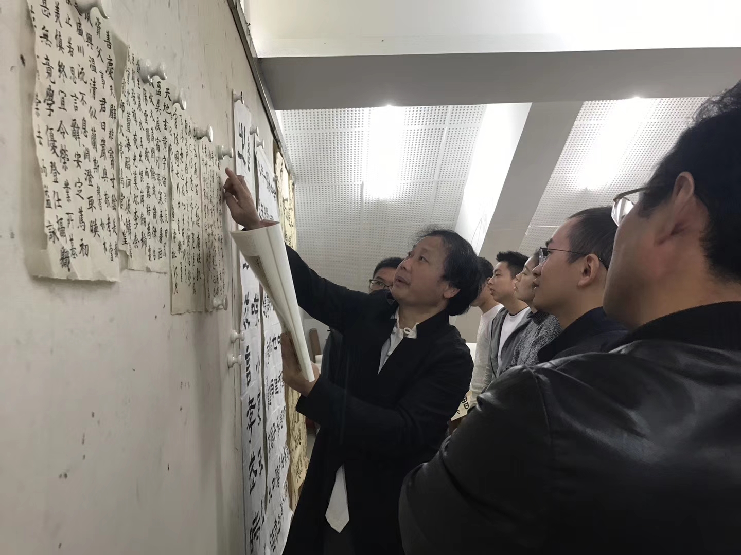 2018年10月13日上午,绍兴文理学院兰亭书法艺术学院副院长刘小华教授到中国书法研究所进行交流指导,中国书法研究所所长曹建教授主持交流活动。刘小华教授对书法所在读博士生、硕士生的书法作品进行了深入点评和指导。