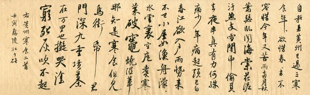 临习心得:坡公寒食帖,笔势雄杰,汪洋恣肆,雄厚跌宕,应非缓缓枕腕所为,虽是黄州时诗,似是元祐间笔墨。