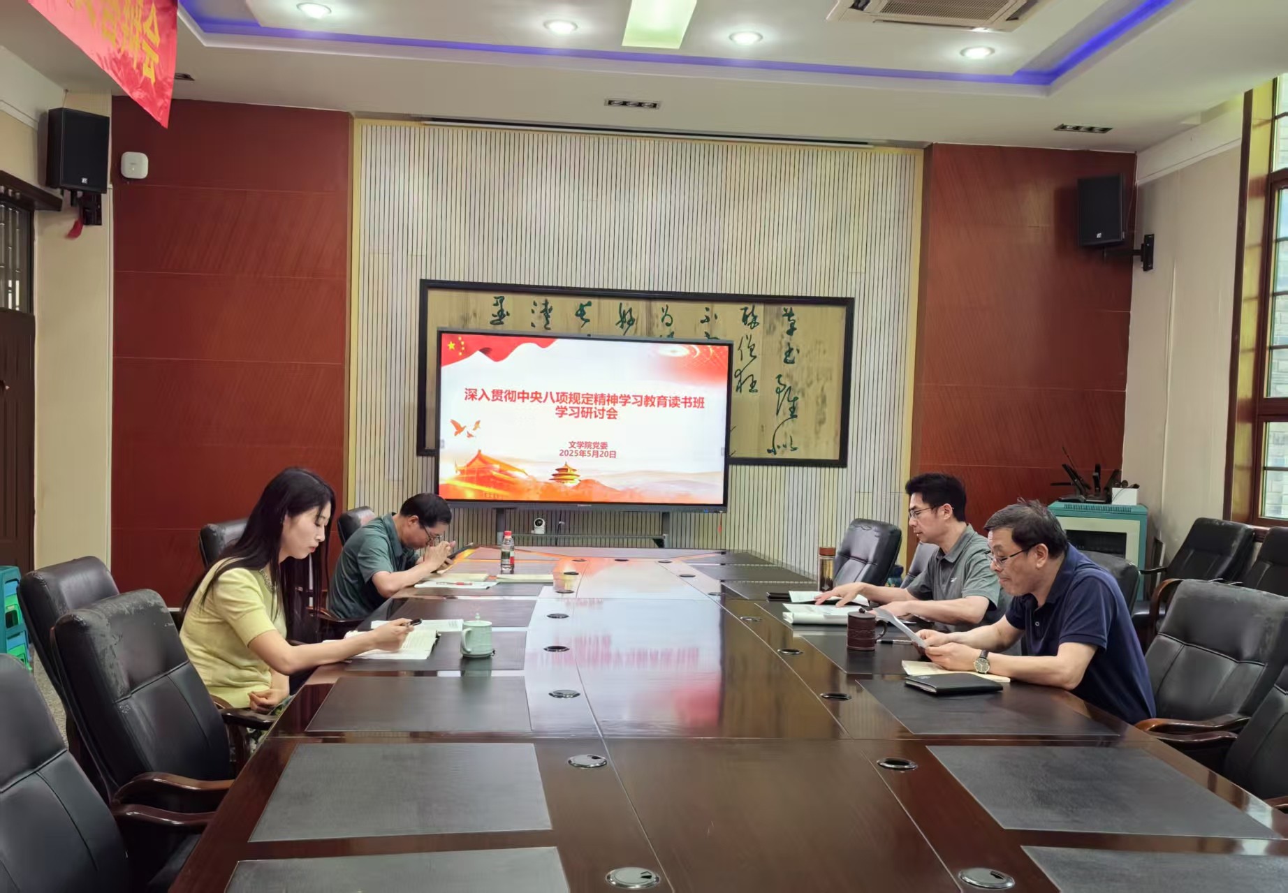 5月20日,76net必赢官网党委开展了深入贯彻中央八项规定精神学习教育读书班暨党委理论学习中心组学习会,深入学习中央八项规定精神相关内容。学院党政领导参加会议,会议由党委书记秦松主持。