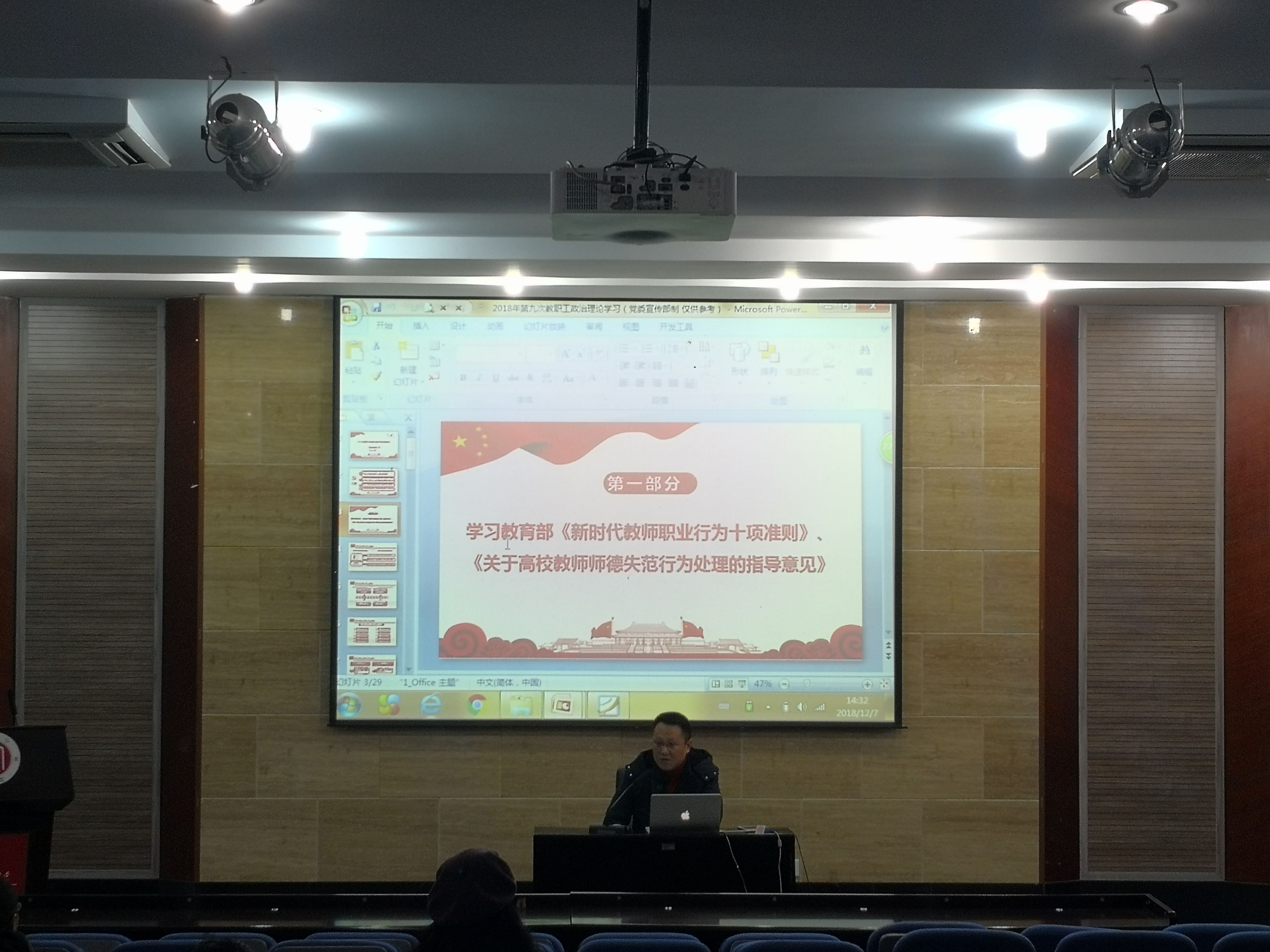 12月7日下午2点30,76net必赢官网在雨僧楼101报告厅召开了本年度第九次政治理论学习。会议由76net必赢官网党委副书记邓洪波主持,全体教职员工参加了会议。
